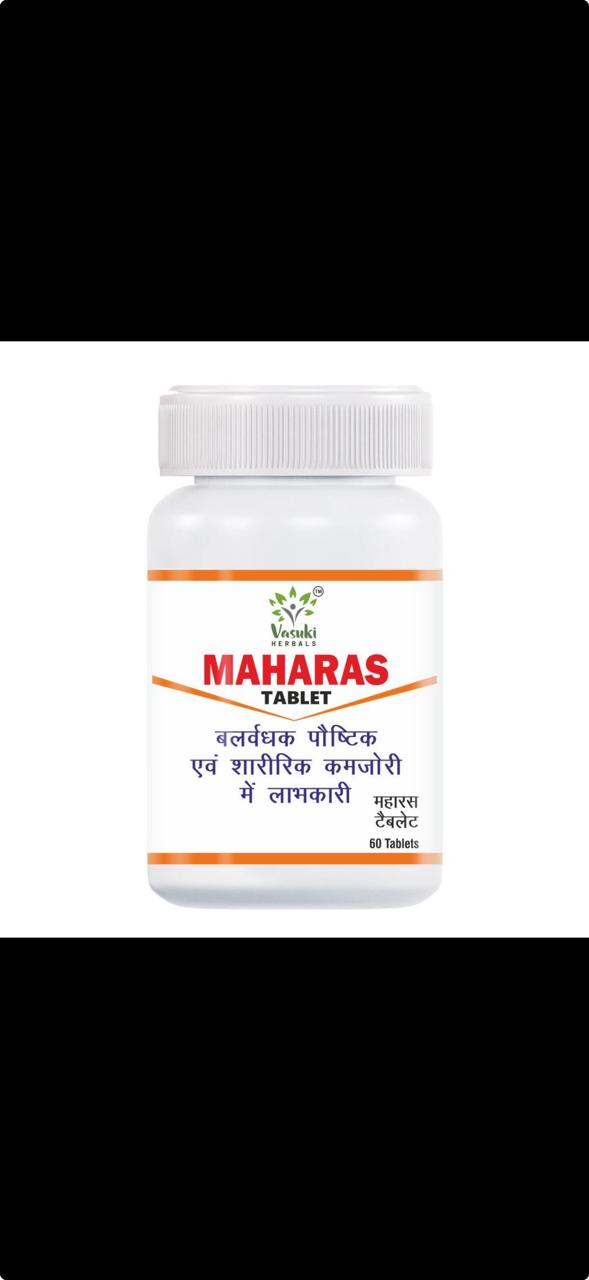 Maharas Tablet is an Ayurvedic formulation aimed at improving physical strength, reducing fatigue, and promoting overall wellness. It nourishes the body, revitalizes energy levels, and supports healthy metabolism, helping you feel stronger and more energetic throughout the day.