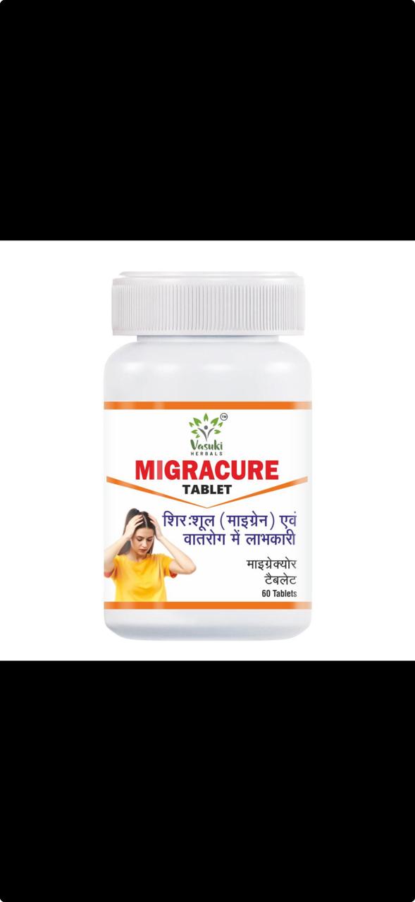 Migracure Tablet is a natural herbal remedy formulated to help manage migraines and severe headaches. It works by soothing the nervous system, reducing stress, and improving blood circulation to the brain, providing relief from migraine attacks and associated symptoms.